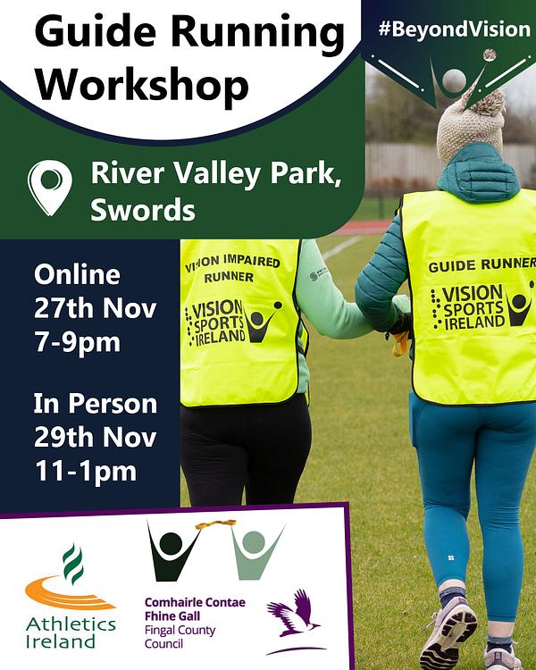 Want to learn how to support vision-impaired runners? Join our Guide Running Workshop with Vision Sports Ireland, Athletics Ireland, and Fingal County Council!